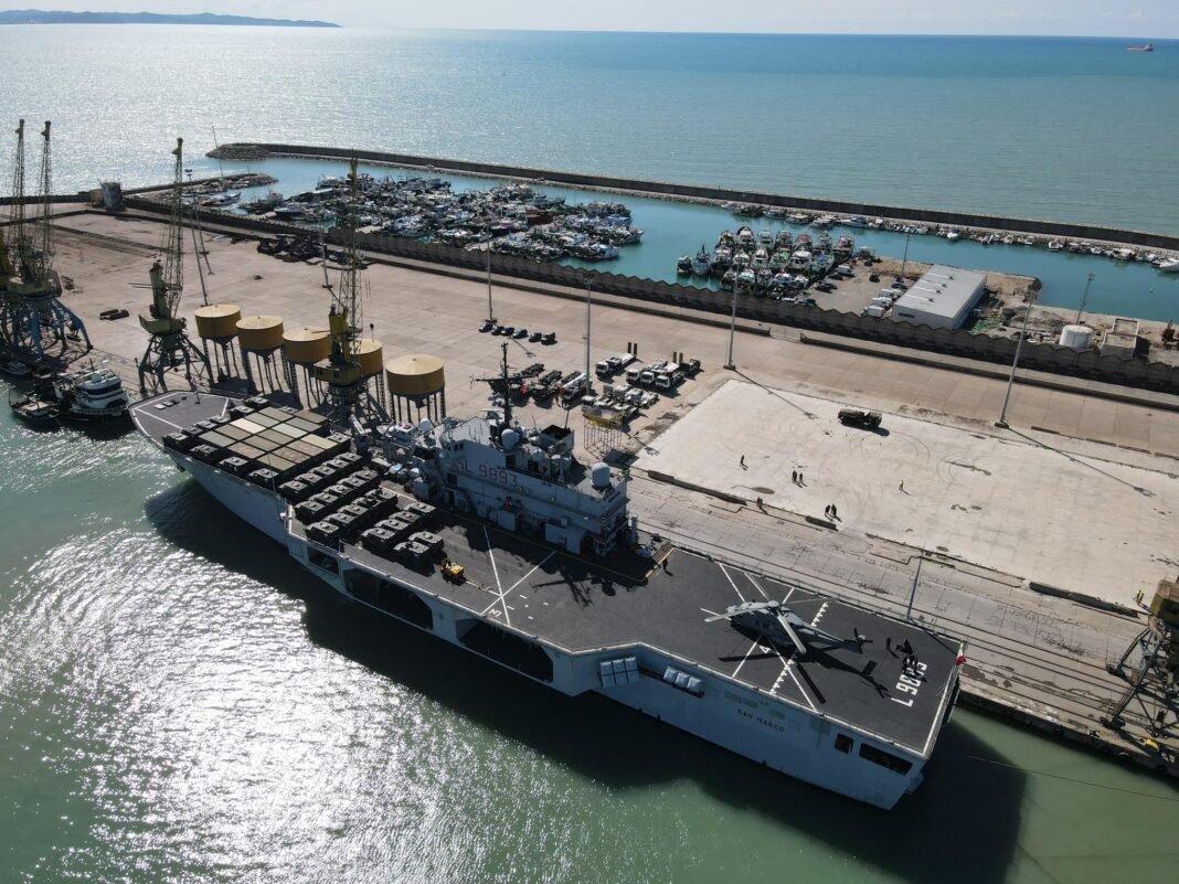 Anija i përket klasit “San Giorgio”, e përbërë nga 3 anije, “San Giorgio”, “San Marco” dhe “San Giusto”, të specializuara në operacionet e uljes së avionëve luftarakë.