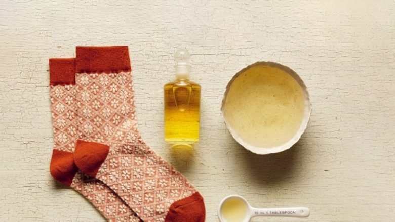 Merrni një palë çorape të trasha nga leshi dhe zhytini në këtë përzierje.
