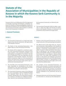 Fondacioni Friedrich Ebert Stiftung në bashkëpunim me Institutin Evropian për Paqe, kanë publikuar online versionin e draft-statutit për themelimin e Asociacionit të komunave me shumicë serbe.
