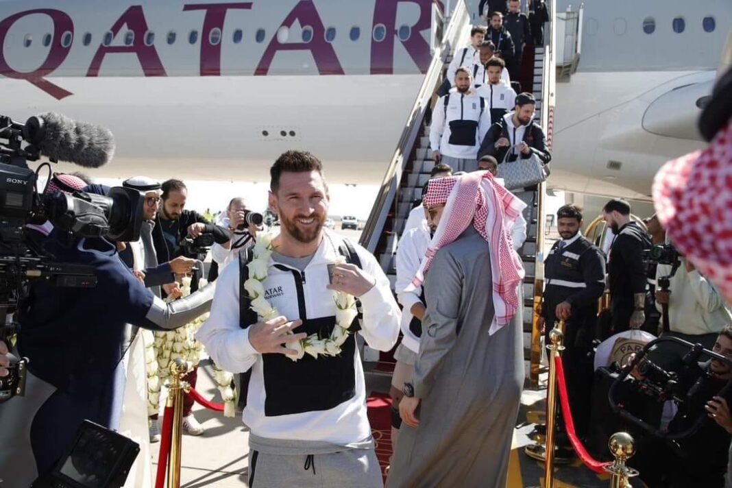 Ylli i futbollit Lionel Messi dhe delegacioni i Paris Saint-Germain mbërritën në aeroportin ndërkombëtar King Khalid në Riad sot për ndeshjen miqësore Ronaldo VS Messi sonte./rti