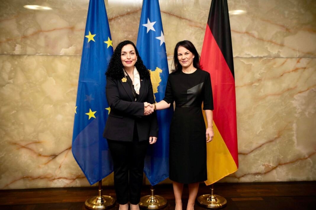 Presidentja e Republikës së Kosovës, Vjosa Osmani gjatë vizitës së punës në Gjermani, ka takuar ministren e Jashtme të Gjermanisë, Annalena Baerbock.