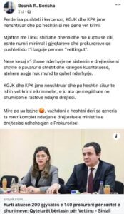 “Po shpresoj se në polici se paku do ketë një jurist që e din se çka përbën vepër penale e çka jo, e nuk do e marrë mundin as të ftojë personin për intervistim sepse atëherë vërtet do bënin krim. Edhe Ministria e Drejtësisë do ishte mirë me e ditë se çka përbën vepër penale sepse Kodi Penal nga aty ka dalë.”